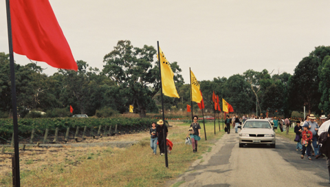 Another 'off-year', the one-off ‘WOMAD in the Vales’ was held at McLaren Vale Oval on Sunday 15 March, as a one day feast of music and local produce to celebrate the end of Robyn Archer’s 1998 Adelaide Festival of Arts. 1997 festival highlights Shooglenifty returned to the WOMAD stage, and Geoffrey Oreyema made his 3rd appearance at the festival. Some of the artists on the bill also played at the amazing Adelaide Festival club that year, 'The Squeezebox'.