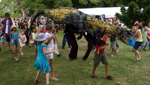 A new creation, the Parachilna Garden Café, was a full-service restaurant on-site run in partnership with Andrew Fielke from the Prairie Hotel in the Flinders Ranges. The festival took Ravibandhu Vidyapathy from Sri Lanka to Coober Pedy with Country Arts SA to lead percussion workshops, and a new area - 'Speakers Corner' - was born.
