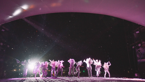 The resounding highlight of the festival, Gratte Ciel’s Place des Anges, delighted nightly with a magical aerial spectacular, as the visiting ‘angels’ danced and frolicked in the moonlight, illuminating the skies above the treetops.