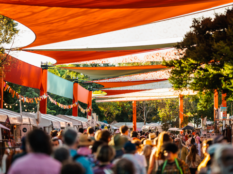 This specially commissioned covered marketplace stretches over some 160 metres on Plane Tree Drive and is a key artery guiding festivalgoers through the many experiences which await discovery at the heart of the festival. Designed in collaboration with Australia’s leading specialists in future-focused tensile fabric structures, Tetrik.